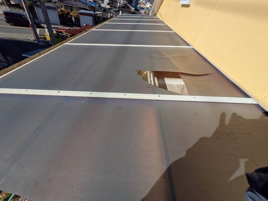 風により被害を受けたポリカ屋根材を交換しました 風害などは火災保険の適用になります これはすべてのお客様に共有したい情報です