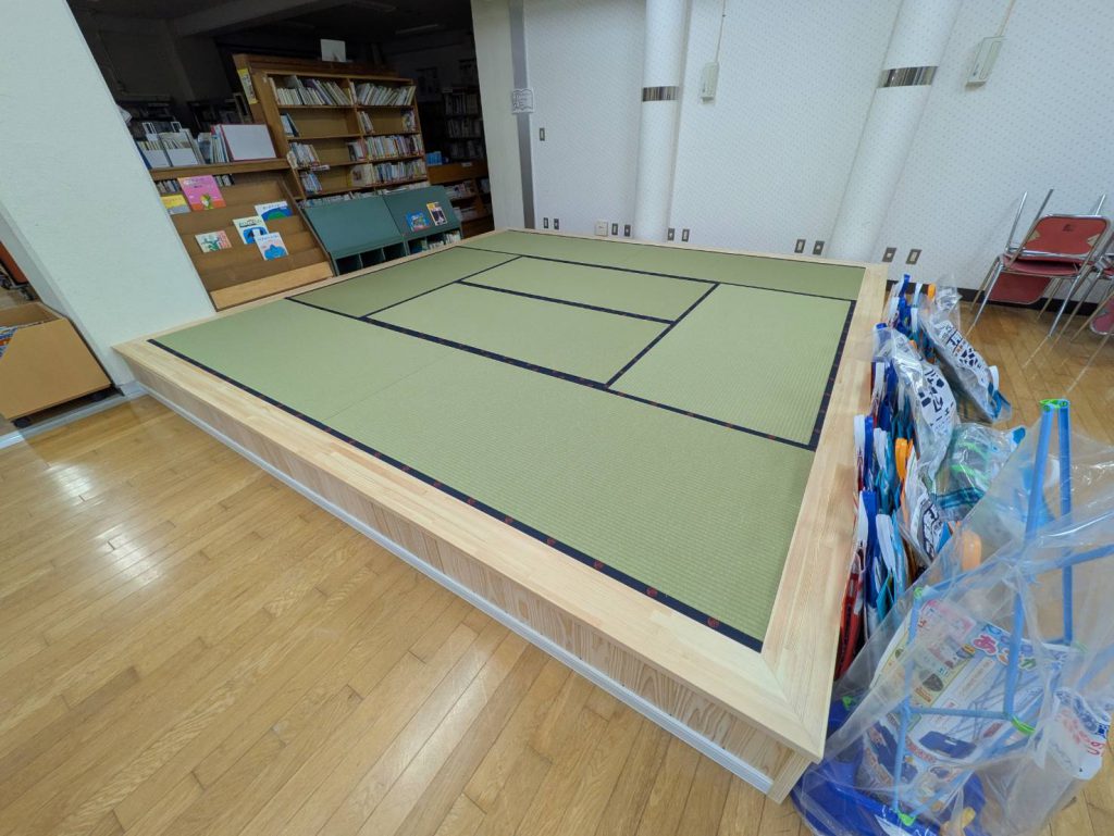 上記写真 開成小学校図書室 上げ床制作工事