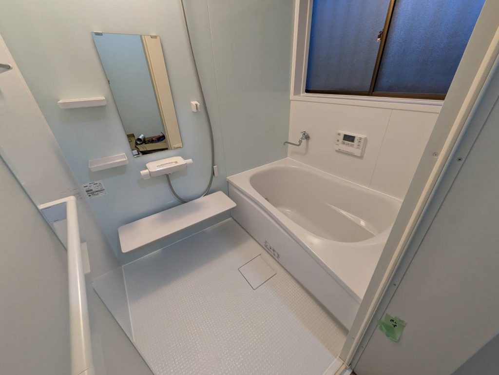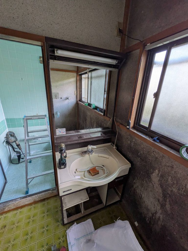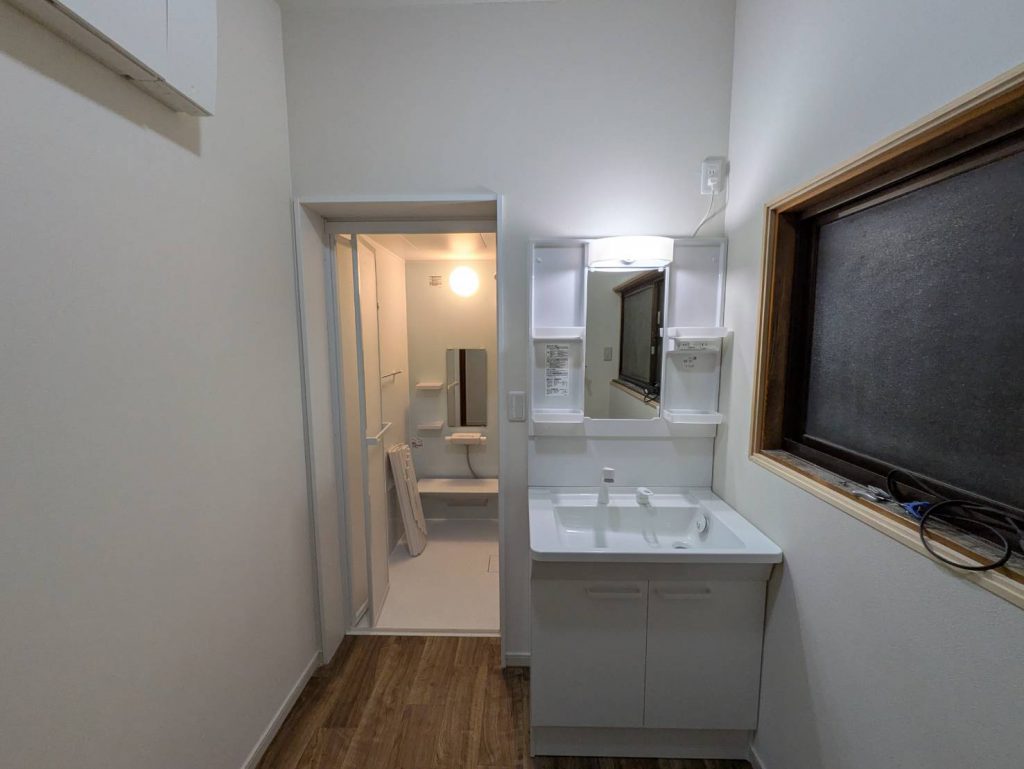 上記写真 山北町岸W様邸 洗面所・浴室リフォーム工事 工事前 工事後